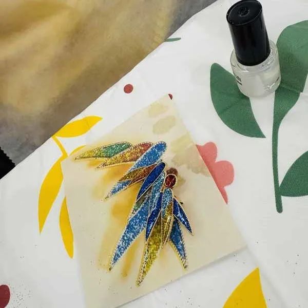 在专业导师的悉心指导下,女同胞们化身匠人,细致调色、精心点蓝、巧妙补色、细致封层,每一步操作都饱含着对美的无限向往与对传统技艺的深深敬意。从千里江山的壮阔到蝴蝶翩跹的轻盈,从竹叶的坚韧不拔到幸运草的温馨祝愿,每一件作品都是独一无二的艺术结晶,承载着创作者的巧思与情感。
